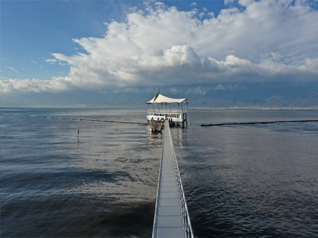 采用高效可調(diào)式渦井取藻、藍(lán)藻囊團(tuán)破壁、一體化二級強化氣浮等核心技術(shù),岸上站點藻水分離系統(tǒng)集成了藍(lán)藻打撈、脫氣沉降、氣浮分離、脫水等多個環(huán)節(jié)的技術(shù)和設(shè)備,形成了可規(guī)模化和工廠化處理藍(lán)藻的基站。適用于藍(lán)藻水華長期規(guī)律性、大范圍聚集區(qū)域的常態(tài)化應(yīng)急處置。